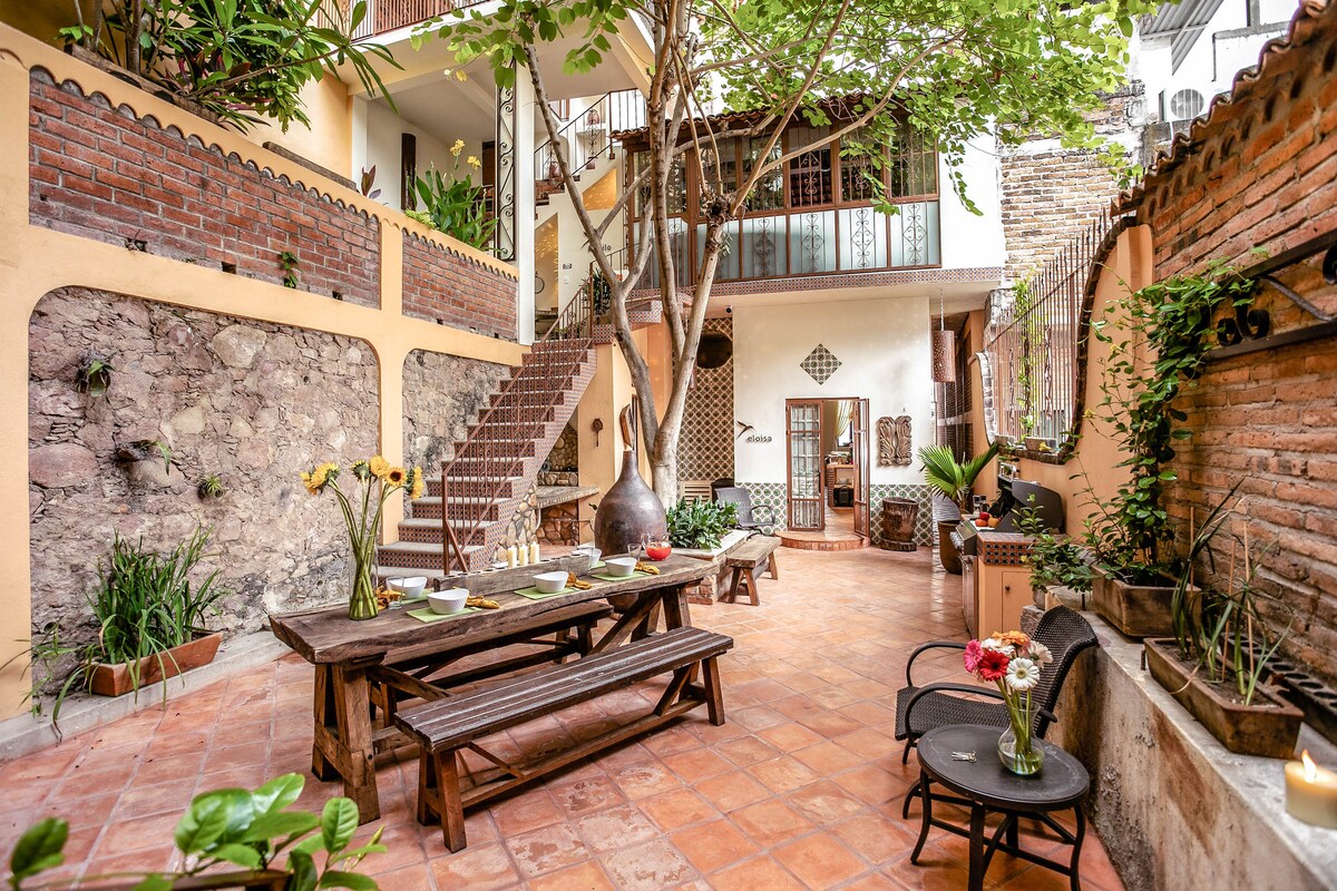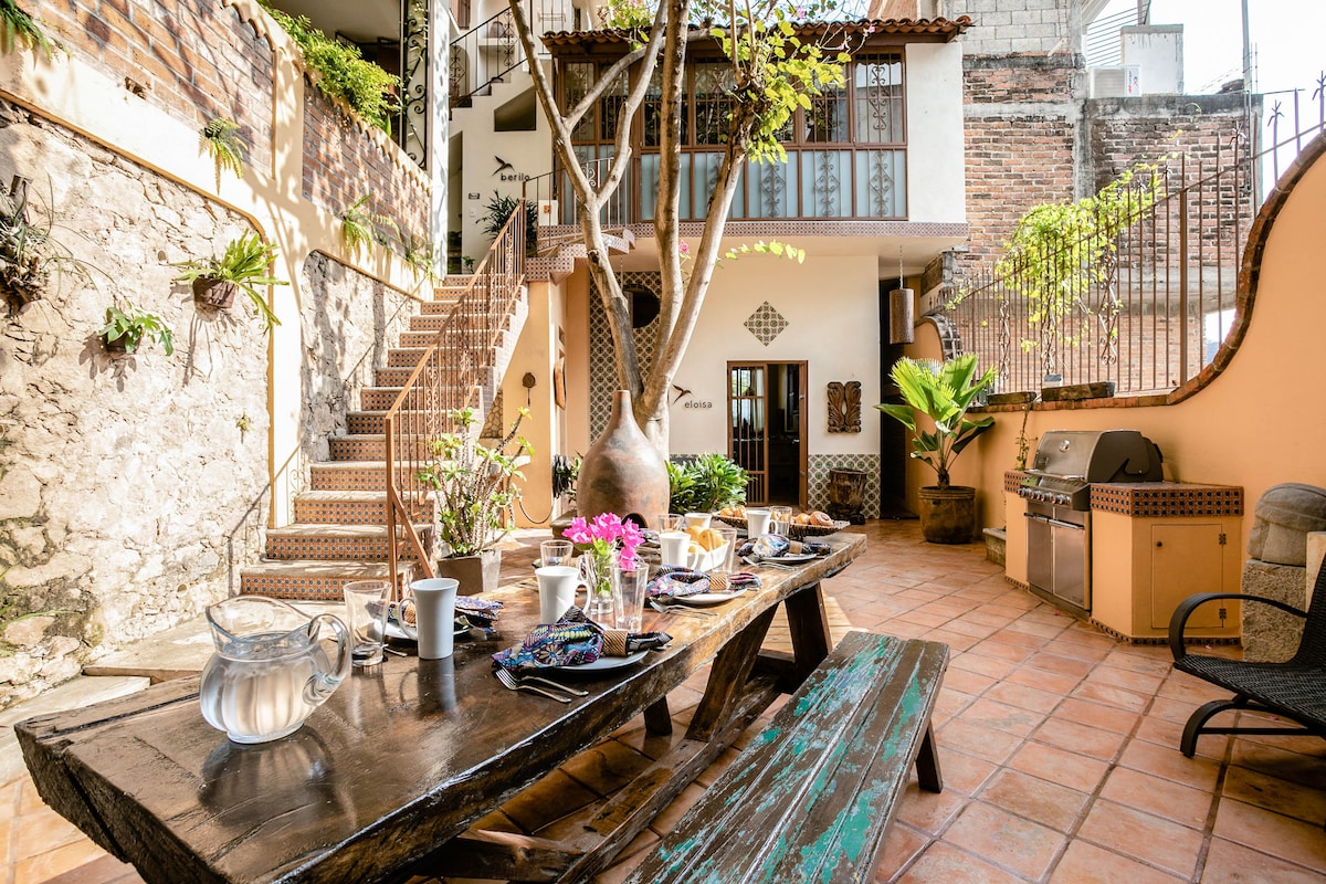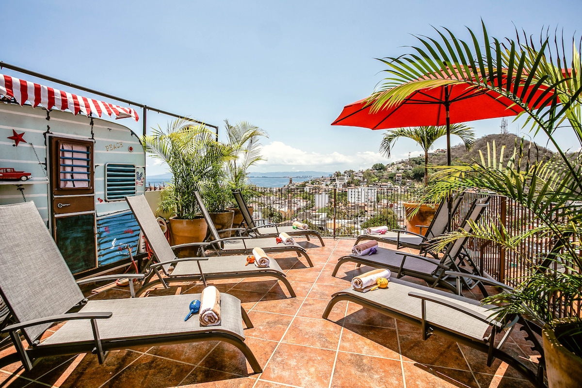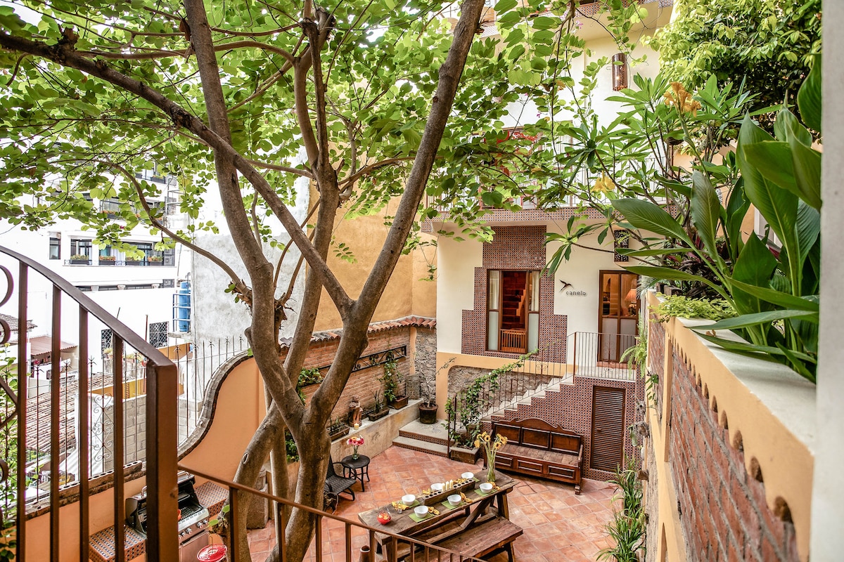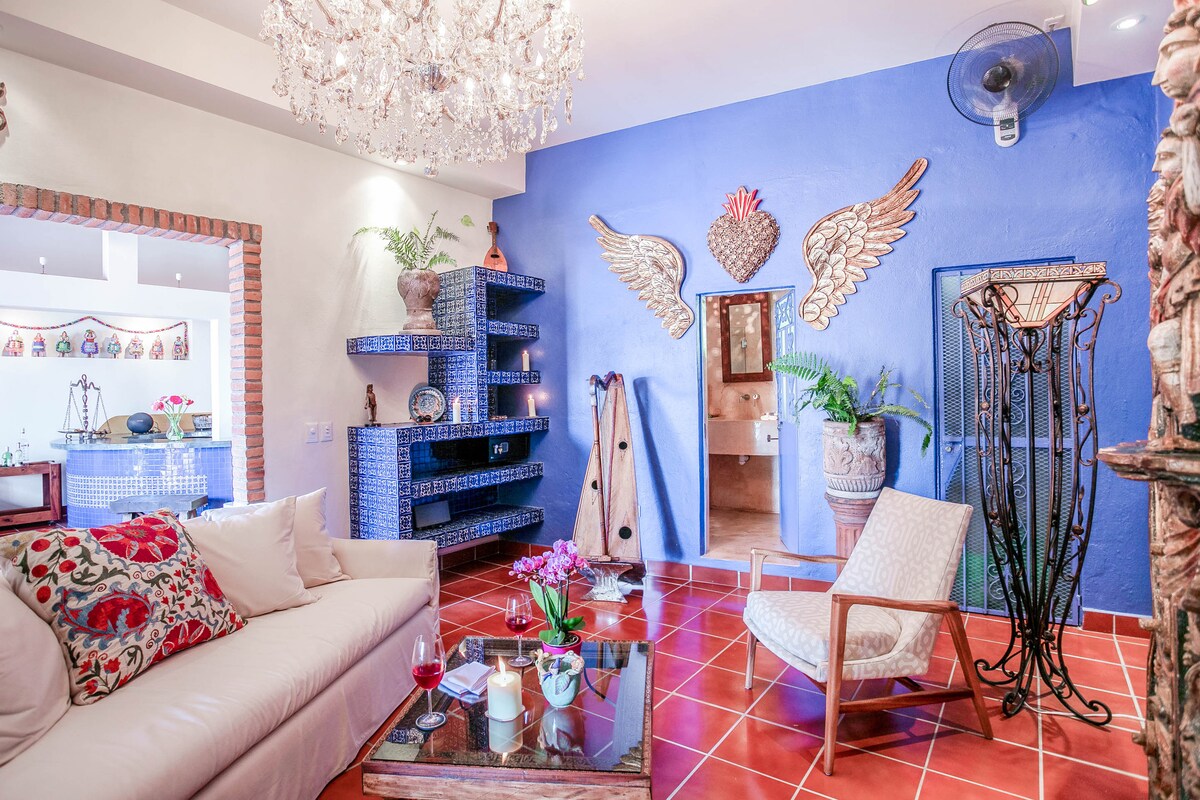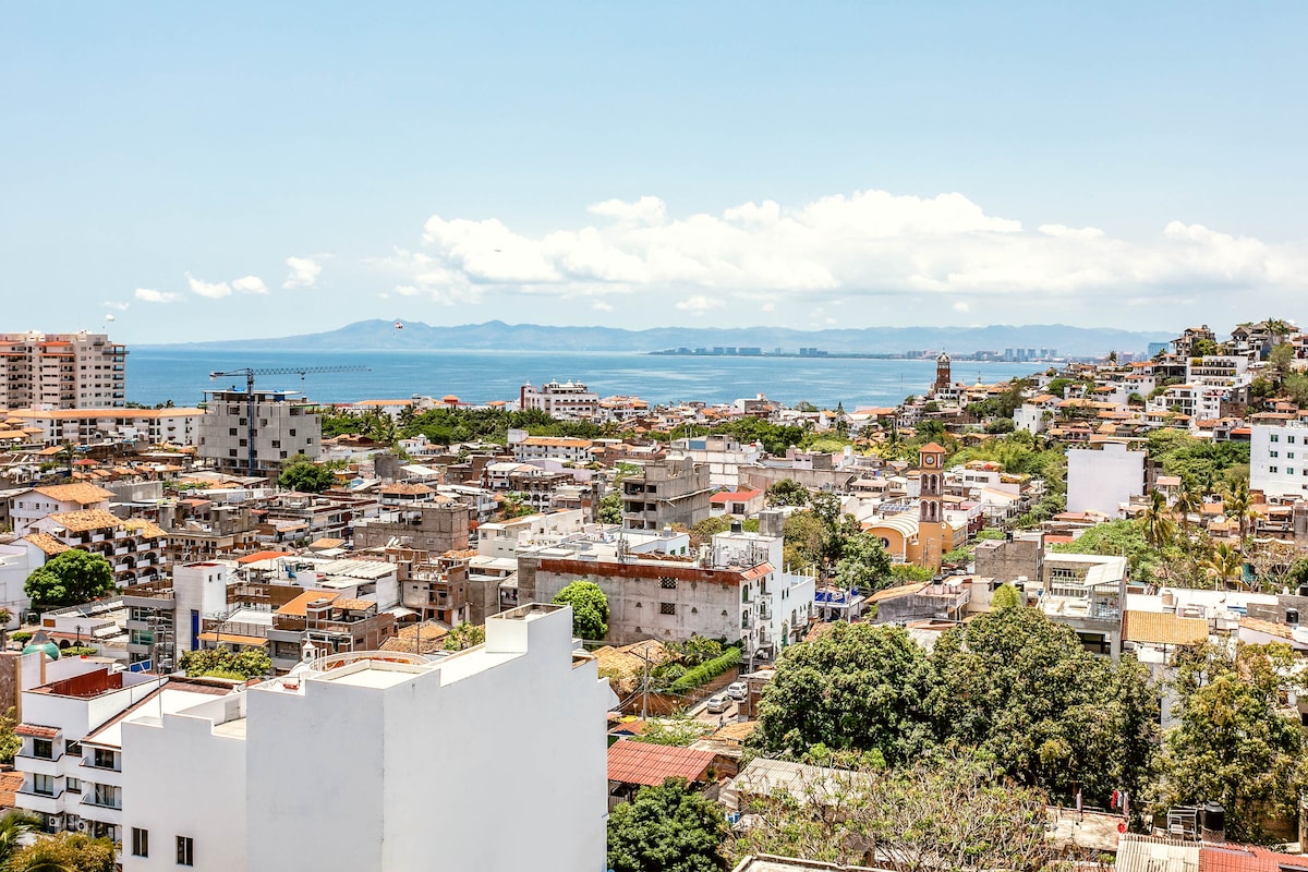 Puerto VallartaEmbrace the authenticity of this stylishly decorated Romantic Zone Villa. Rich colors & terracotta tile work give a pop of personality to the Chef's kitchen & outdoor patio perfect for hosting a dinner party. An inner courtyard with manicured gardens, rooftop pool/bar & stunning views of the Bay will truly amaze. Our cleanliness & your safety have always been a top priority at Villa Colibrí MX.
