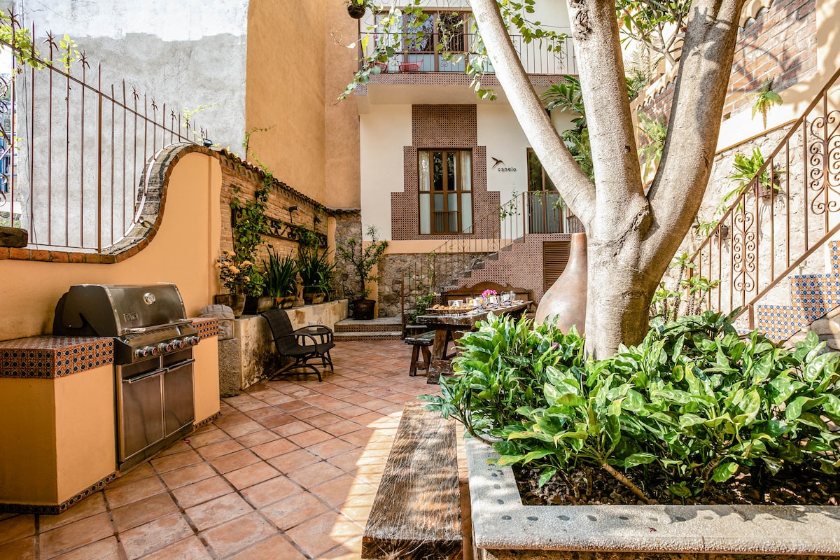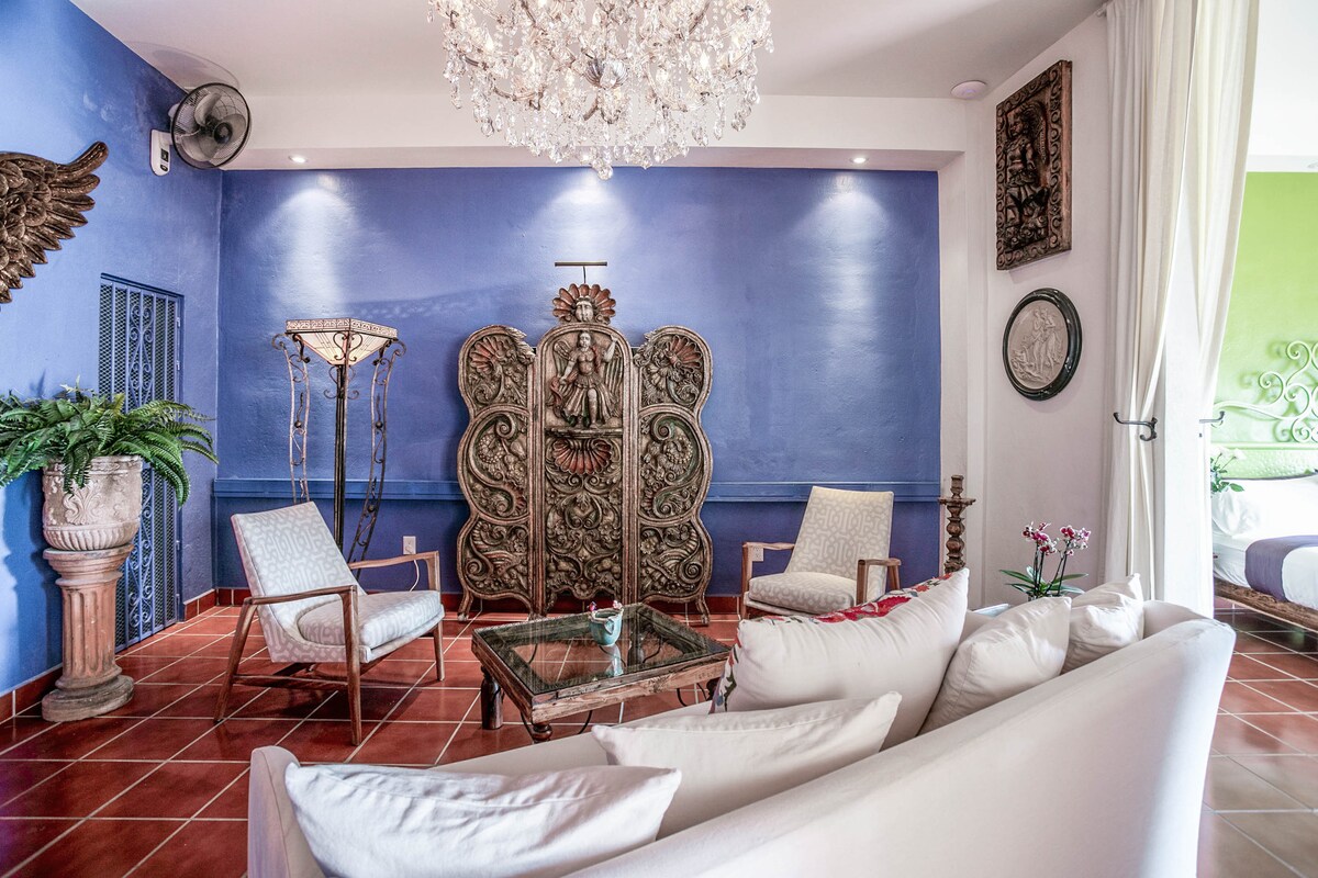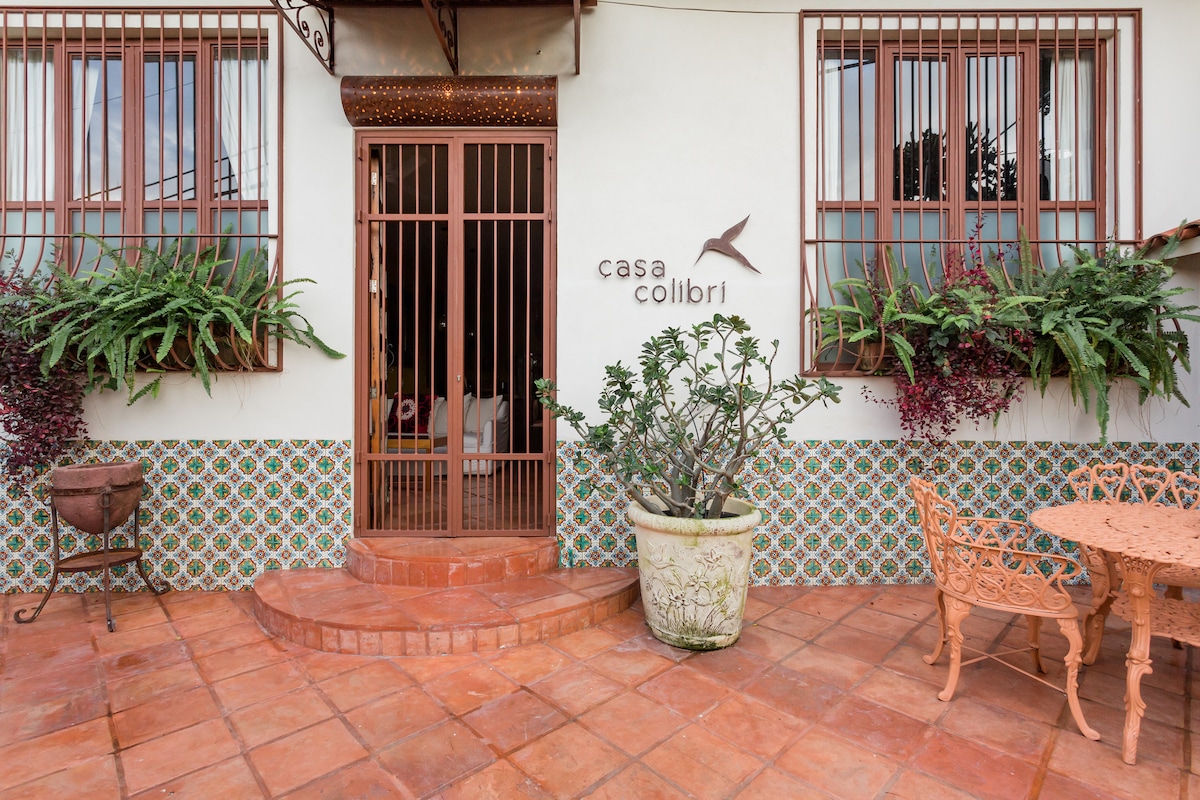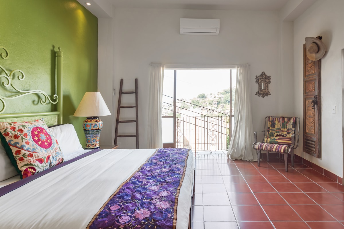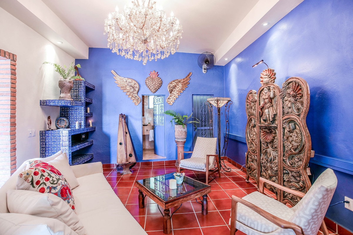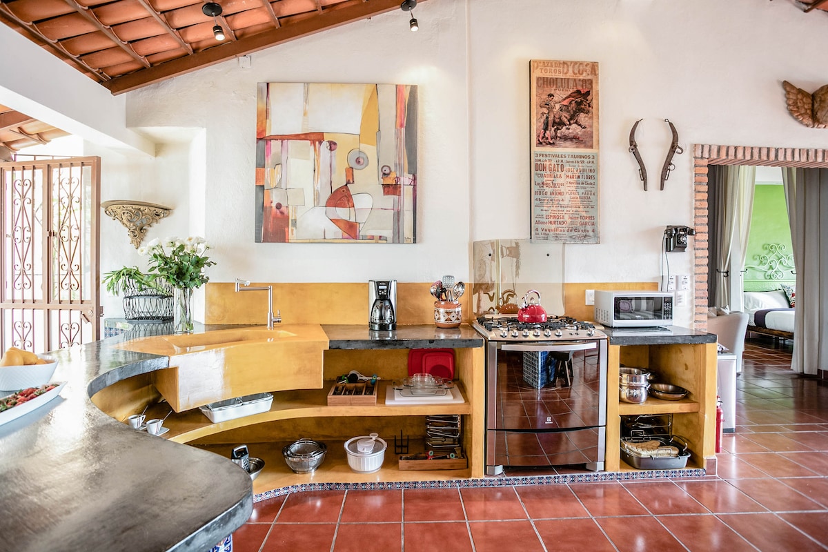 Puerto VallartaEmbrace the authenticity of this stylishly decorated Romantic Zone Villa. Rich colors & terracotta tile work give a pop of personality to the Chef's kitchen & outdoor patio perfect for hosting a dinner party. An inner courtyard with manicured gardens, rooftop pool/bar & stunning views of the Bay will truly amaze. Our cleanliness & your safety have always been a top priority at Villa Colibrí MX.