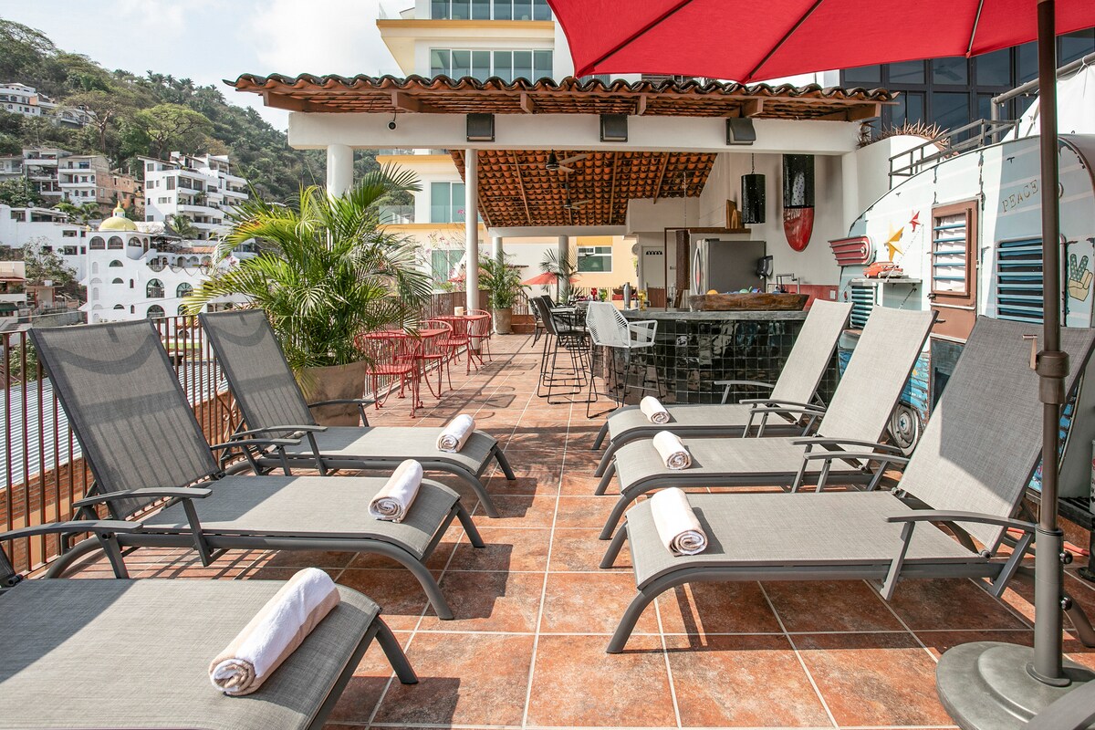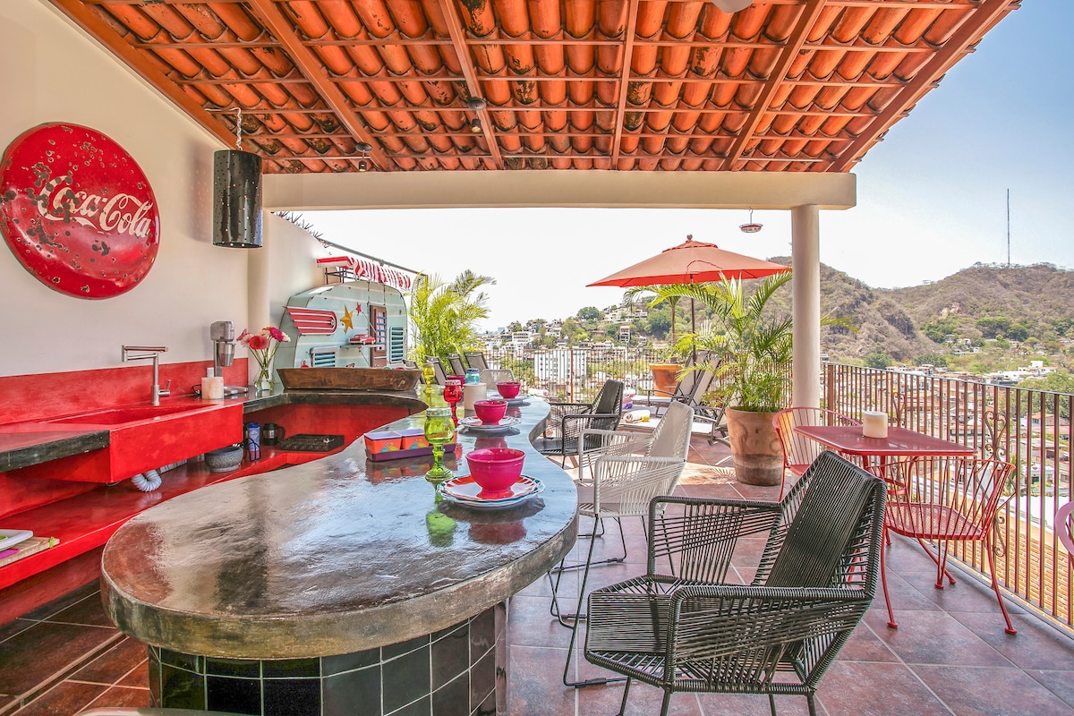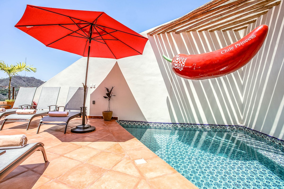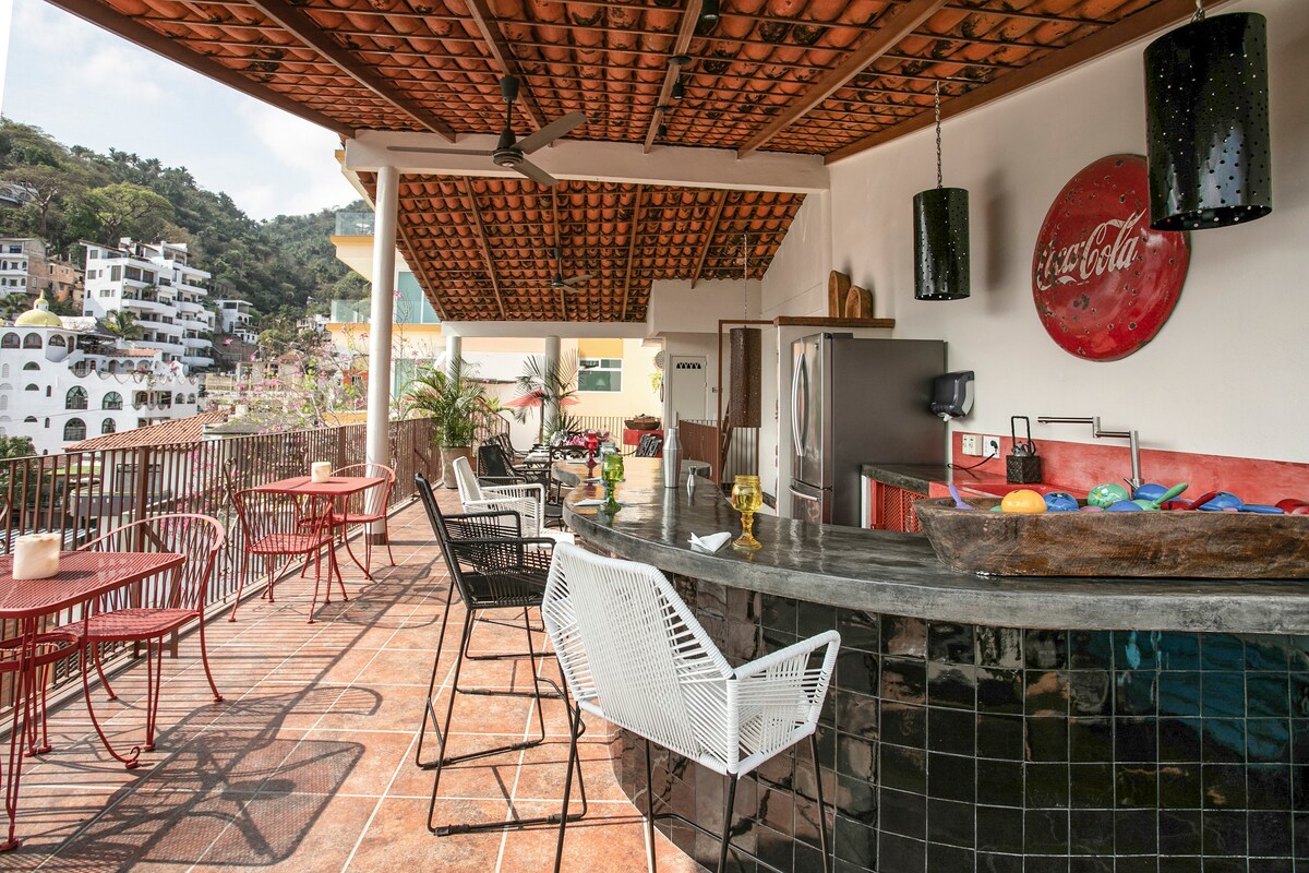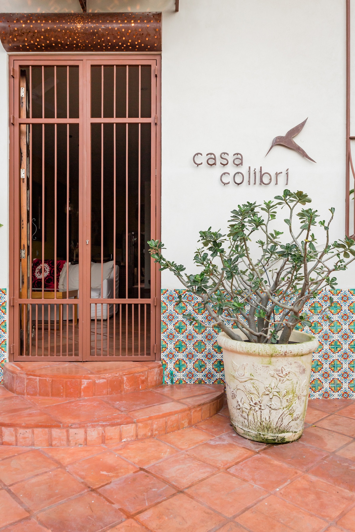 Puerto VallartaOpen French doors from a bedroom decorated in passionate fuchsia & step onto a balcony overlooking Villa Colibrí MX's infamous Orchid tree. Handmade art & vintage collectibles give each room a distinct local flavor. Dip into a saltwater pool, relish the courtyard gardens or relax at the bar overlooking the Bay. Our cleanliness & your safety have always been a top priority at Villa Colibrí MX.